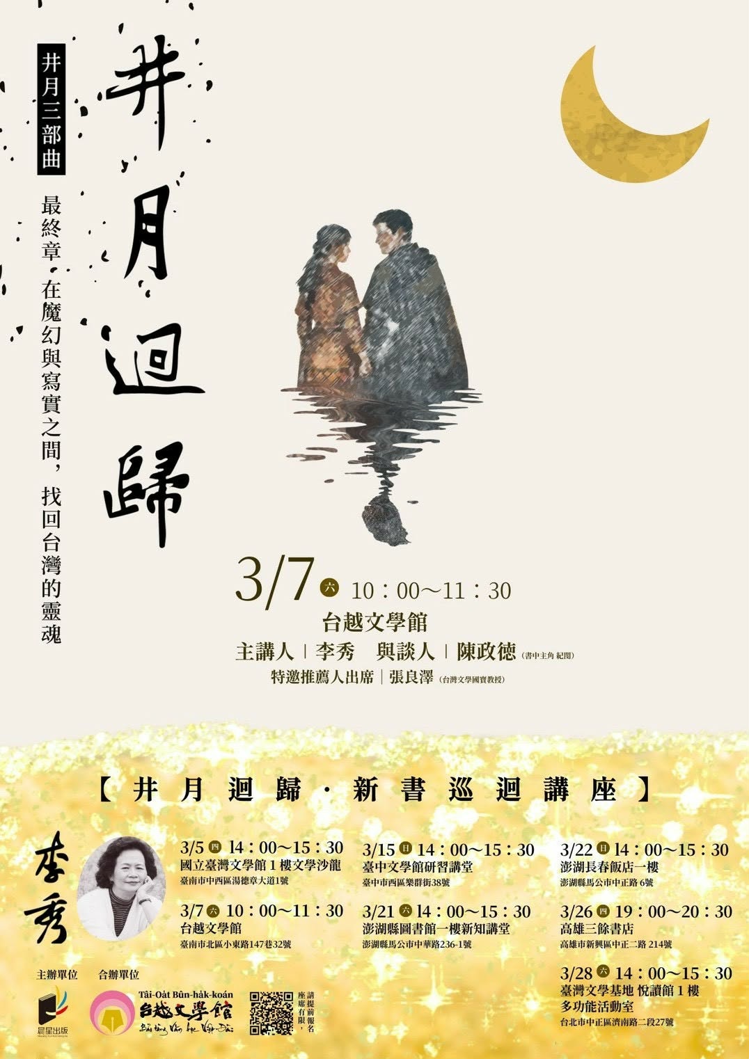 從《井月澎湖》亂世下的家族興衰糾葛、《井月流轉》離人的漂泊與轉折,再到《井月迴歸》百年航行與情感歸返,談文學作為記憶容器,承載島嶼的人情與時代。